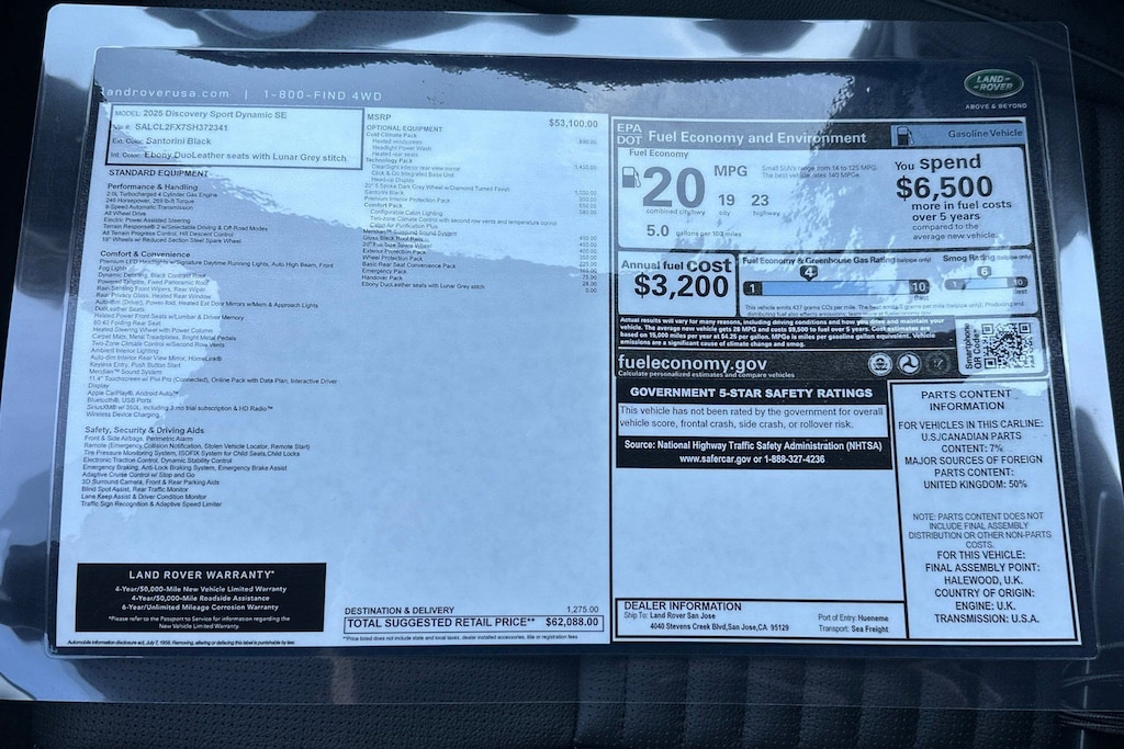 Plus government fees and taxes, any finance charges, any dealer document processing charge ($85), any electronic filing charge, and any emission testing charge. Any new Land Rover vehicle prices include a destination charge.
